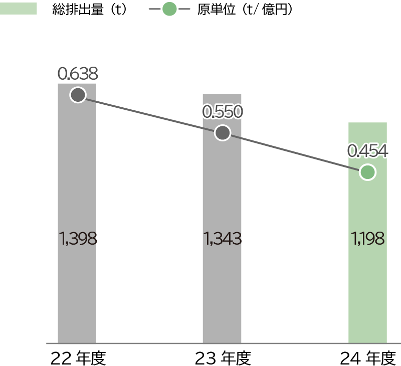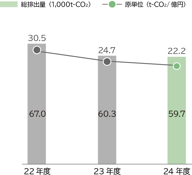In order to ensure a decarbonized, recycling-oriented society and symbiosis with nature, we have set targets for each indicator and are working on activities to reduce the environmental impact.
